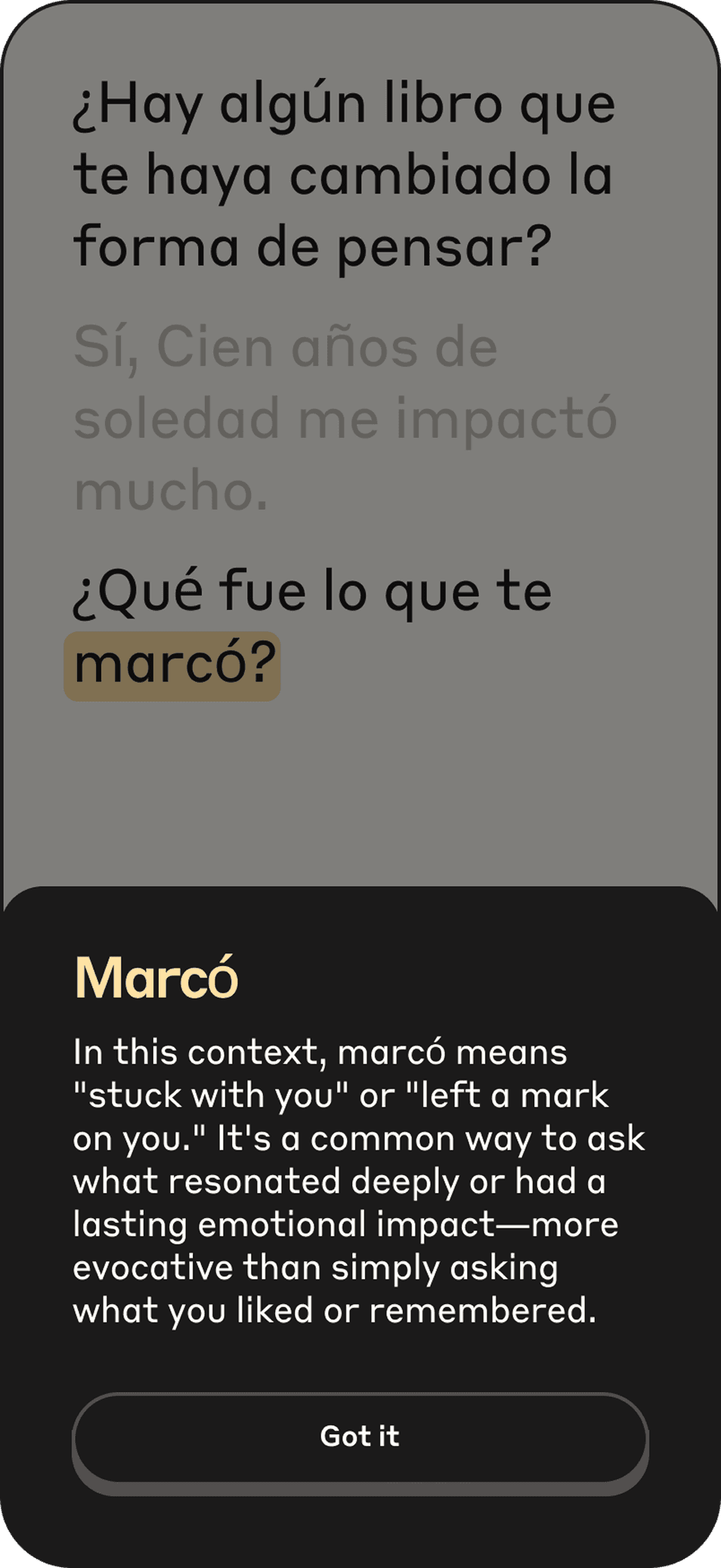 Expand your vocabulary by clicking any word for context aware translations